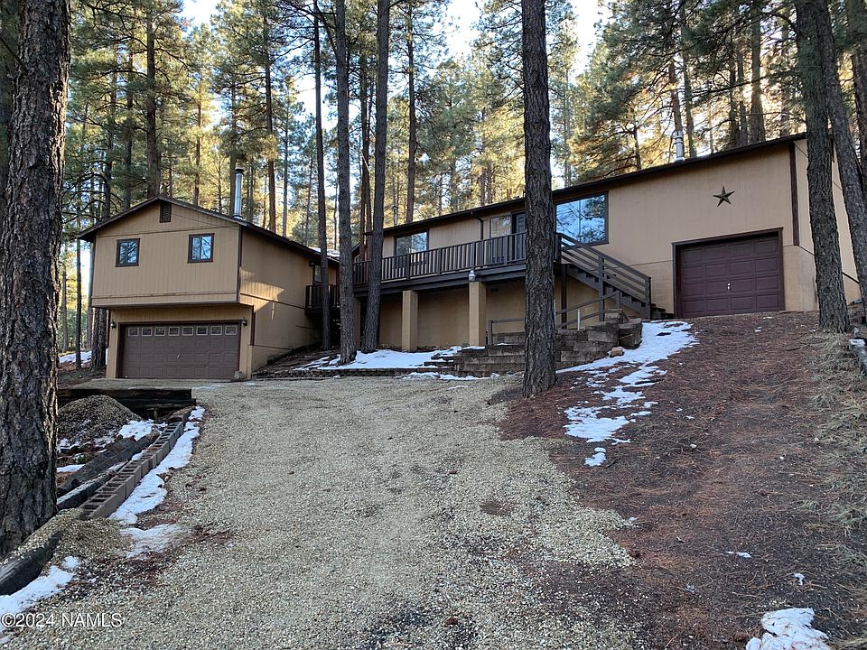 3205 Kweo Trail in Flagstaff, AZ, is a charming 3-bedroom, 2-bathroom home with a one-car attached garage. Seller recently installed granite countertops. Additionally, it features a detached two-car garage with a loft. The property boasts new appliances, fresh paint, and new carpeting. Nestled in a wooded neighborhood, this home offers a cozy and comfortable living space in a picturesque setting.