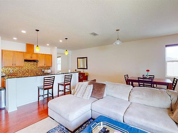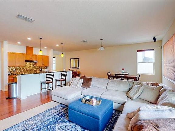 One or more photo(s) has been virtually staged. BIG FENCED YARD! GOURMET KITCHEN! GATED COMMUNITY! NO CDD! Can you IMAGINE being right in the middle of IT-ALL! The Outlet Mall, Cypress Creek Town Center, Advent Health Ice, Aldi, Costco (1/2 MILE AWAY). This home is situated in a small gated community just 1/2 mile from everything you could possibly need. Just 5-years young, this home is clean as whistle from its baseboards to its ceiling. The paver driveway and walkway greet you and the raised panel carriage door invites you into a wonderful split-floorplan featuring a study/office, 2 secondary bedrooms, a large master suite, ( 3 BEDROOMS + OFFICE ) oversized dining room (could be a second living room), and an impressive kitchen that is open to the family room with great views of the green, spacious, and private backyard. Sweet touches throughout the home include iron door hardware, raised panel doors, upgraded light fixtures, nest thermostat, amazing engineered hardwood floors & upgraded water heater.