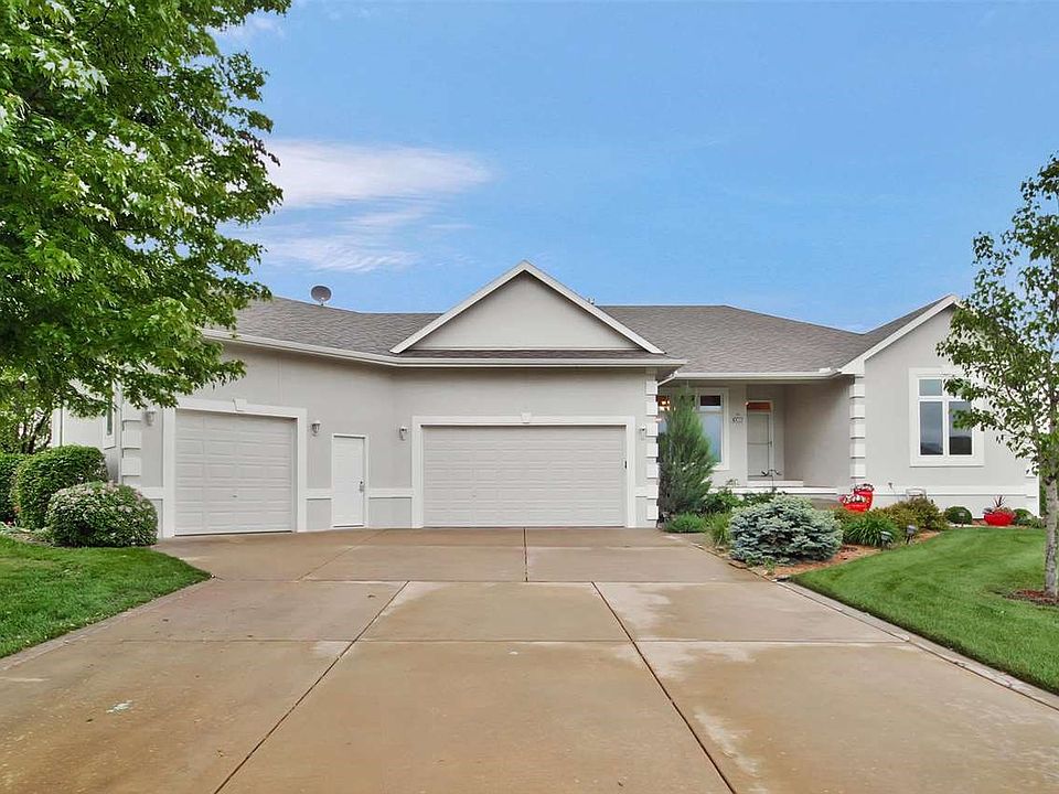 Don't miss this! Maize schools, almost a full acre, 5 car garage, open plan, wood floors, updated kitchen with quartz counters, stainless appliances including gas stove, sun room, detached shop/garage is 30 x 24 with heat/air (size of a 2 car plus garage and part of the 5 car available space) , sport court, mother in law quarters off the garage with full bath, heat and air and frame for murphy bed, craft room in basement and so much more! Entering this open you are greeted by an abundance of windows and light and fabulous views of your tree lined fenced backyard. Main floor features bedroom, full bath, formal dining, eat in kitchen space with eating bar, sun room with sliders to your open deck and laundry room. Master bedroom has beautiful views of your backyard, two closets, architectural ceiling, whirlpool tub, two sinks and shower. Basement is a walk out and features rec room, walk up wet bar with granite and glass tile back splash, built in entertainment center with lighting, craft room with walls of built in cabinetry, two bedrooms, full bath and large storage area. Roof was new in 2016 and has 50 year shingles, HW new in 2017. Manicured lawn is on well and sprinkler and the over sized patio below the deck and sport court in backyard make for great entertaining areas. Tour and see all that this home has to offer!