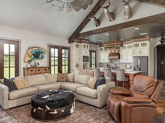 WIDE OPEN SPACES!This one of a kind custom built 2,200 sqft - 3/2 home is everything you could imagine.Situated on 55+- acres of beautiful pasture land completely cross fenced, with cattle pens,hay barn, and a humongous 3 bay 65x65 shop with an A/C storage room.Plenty of additional parking for your farming equipment, and vehicles. All the hard work is done and ready for you! So much potential with this land, plenty of room for your agricultural & multiple families to build and grow together,making memories.Peaceful road leads you to this gorgeous stone accented farmhouse that is filled with so much attention to detail.Home boasts cathedral ceilings in the den with great open concept kitchen with tons of natural lighting from French doors and windows - large marble island work center with designer light fixtures, finishes and stainless steel package. Large barn door leads you to the flex room out to your tranquil views of the unbelievable sunsets this land has to offer.