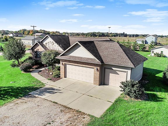 Here is a 3-4 bedroom country home close to expressway and town. There is also the rails for trails just 2 miles away. this home has new tiled flooring, carpeting, nice french doors to the bedroom/den. The kitchen, dining and living room are all open to one another. Master bedroom has its own bath and walk in closet. 1st floor laundry has room for extra storage. The basement is just about totally finished with a gas fireplace and egress windows. The brick and vinyl exterior along with the 3 car garage make this a fantastic home. As a bonus we have another pole barn in back. This home is close to the expressway, shopping, and is located on a black top road.