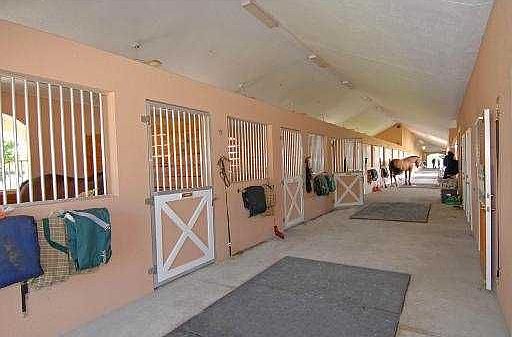 This exceptional horse farm consists of a 43 stall barn, 6 wash stalls, 2 offices, 4 tack rooms, 6 storage rooms, one feed room, a second story owners lounge with a full bath, vistas of an oversized sand arena and grass field with a water jump.