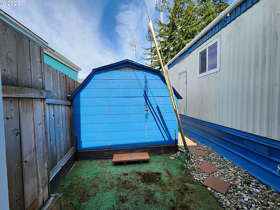 This single wide manufactured home has had many recent updates including new flooring, paint, plumbing, and landscaping. The roof was done within the last three years as well. The lot is fully fenced with a gated carport and covered patio area in the back. The beginning stages of a terraced garden are in place and ready for your ideas. The shed adds additional storage space and has electricity. This is a 55+ park, offers must include park approval from Pacific Trailer Park. Call for a personal tour today!