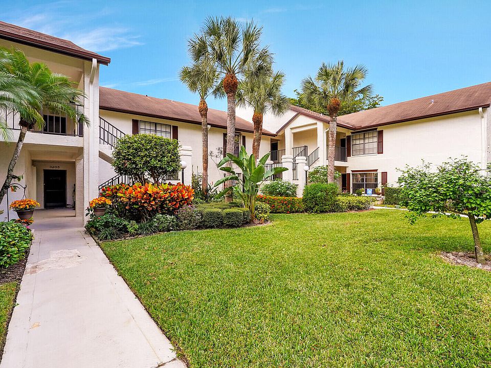 Welcome to this stunning first-floor condominium that embodies the epitome of Florida living. Boasting two bedrooms and two bathrooms, this gorgeous residence offers a perfect blend of elegance and comfort. The open-concept design seamlessly connects the living, dining, and kitchen areas, creating a spacious and inviting atmosphere. With large windows throughout, the condo is bathed in natural light, accentuating the beautiful design elements and creating a warm, welcoming ambiance. Situated in a private enclave, the condo provides an exclusive view of a pristine golf course, ensuring tranquility and privacy. The interior is a masterpiece of modern aesthetics, featuring tasteful upgrades that enhance both style and functionality.