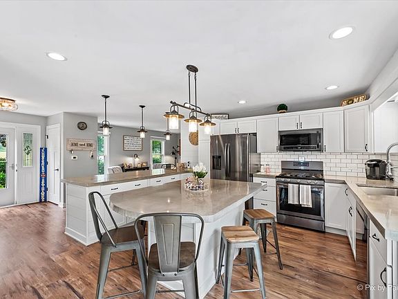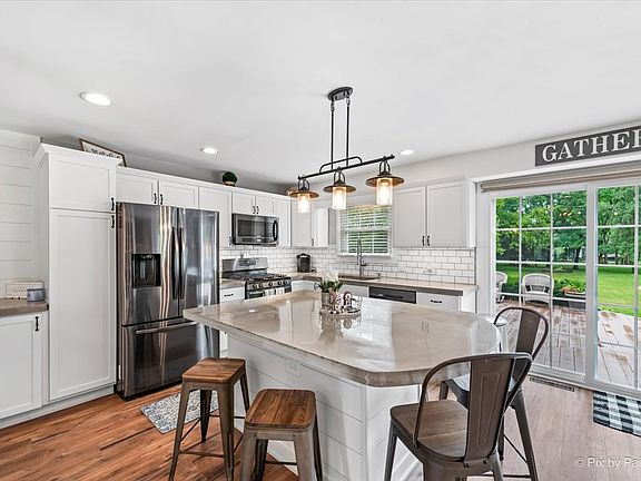REMARKABLE 4 BEDS / 2.1 BATHS CONTEMPORARY 2-STORY HOUSE ON 1.25 ACRES LOT IN CHAPEL HILL ESTATES! This House has it all w/ Gourmet Kitchen w/ Colonist Trim Cabinets, Cement Countertop, Island, Black Matte Stainless Steel Appliances, Breakfast Bar that can sit 5 Chairs, Luxury Vinyl Flooring Throughout the First Floor, Two Sliders to the Backyard and One in the Kitchen and One in the Family Room, Oversized Family Room w/ Woodburning Fireplace, Large Living Room, First Floor Den, Spacious Master Bedroom w/ Barndoor leading into the Walk-In Closet, Updated Master Bathroom, 3 Additional Generous Sized Bedrooms on the Second Floor, Hall Bathroom w/ Dual Sinks, Finished Basement w/ Huge Rec Room and Private Office Space Area and Tons of Space for Storage, Massive Deck and Perfect for Entertaining, Large Yard, 2 Car Side Load Garage and The Village of Johnsburg allows Golf Carts / UTVs and this would be perfect for a short ride down to the Chain O' Lakes to get on your Boat!