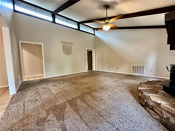 Traditional 3 bed/2 bath home with additional character throughout the property. This home is in the Hardscrabble Way subdivision. It is centrally located and a short drive to any part of Ft Smith with easy access to the interstate. The large living room has upper dorm windows that allow indirect light into the space and provides a view of the blue sky. In the living room there is also a wood burning FP insert. Off the kitchen there are two bonus rooms (mudroom/office space) as you enter the house from the 2-car garage. The backyard has several mature trees, a wood privacy fence, and a deck where you can relax and enjoy the serenity of your space. Large walk-in closet in the primary bedroom. The setting of the house in the neighborhood is very desirable and it is easy to imagine living there. The neighborhood does not have much thru traffic making it very walkable. New Roof installed Oct 2023.