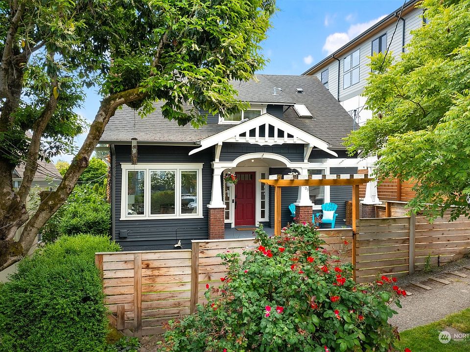 Welcome to this stunning Leschi craftsman with breathtaking views of Lake Washington, Bellevue, the Cascades & Mt Rainier! This charming property features 4 bedrooms, 4 full bathrooms & a large backyard. Inside, the living room is bright and airy with large windows that let in plenty of natural light. The updated kitchen is a chef's dream w/modern appliances & ample storage. The bedrooms are generously sized with plenty of closet space & updated bathrooms. A lower level apartment w/a separate entrance is perfect for guests or a potential ADU. The large fully fenced backyard is wonderful for entertaining with a huge deck to enjoy the view & a detached office providing a quiet and private space to work from home.