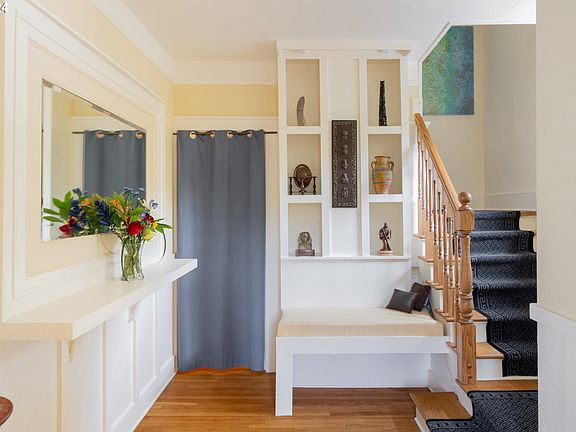 Welcome to Risley Manor, a beautifully-restored 1920 gem on a quiet street in Oak Grove. This home, with only two previous owners, sits on nearly half an acre of expansive grounds. It feels like an old-world estate but is only minutes from restaurants, shopping, & parks. Enjoy exquisite custom details including vintage lighting, leaded-glass windows, hardwood floors, ornate molding & wainscoting. The cozy living room has a beautiful wood-burning fireplace. It leads into the formal dining room where you'll enjoy a large picture window with garden & sunset views, plus a built-in sideboard with historic brass hardware. The kitchen boasts open-rafter ceilings, ample storage, a French baker's rack with marble top, an imported Italian range with safety features, six gas burners, two electric convection ovens, a dishwasher & ice maker. A butler's pantry offers another sink & fridge, perfect for entertaining. The gracious layout includes a primary ensuite on the main level with wheelchair accessibility, plus three bedrooms & another bathroom upstairs. Bonus space downstairs is perfect for guests or a home office. The estate-like yard is a gardener's paradise, packed with flowers, vegetables, & fruit trees. It features a large deck with wheelchair ramp, BBQ hut, outdoor fireplace, meditation pond, & tranquil water features. Pathways lead to a swingset play area & raised garden beds. The organic garden is enriched with natural compost, requiring minimal maintenance with in-ground sprinklers & commercial-grade weed barriers. The well-lit courtyard offers ample parking, & the garage provides additional storage. Conveniently located near shops, grocery stores (Trader Joe's coming soon), schools, & parks, just 15 minutes from downtown Portland. This property offers both tranquility & accessibility. With potential to add an ADU or divide the property, Risley Manor is a versatile & enchanting home. Buyer to perform their own due diligence.
