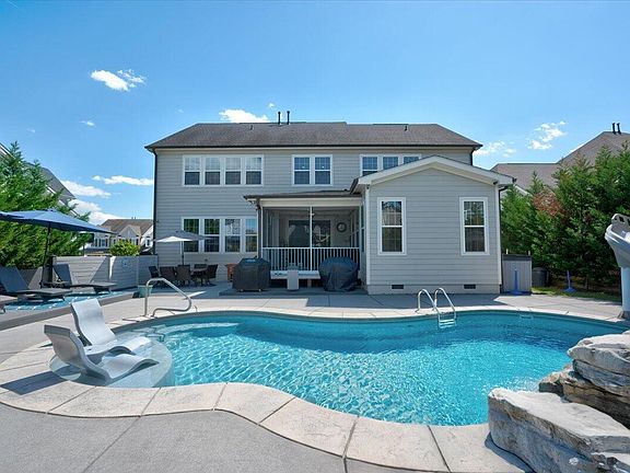 Welcome to your private urban oasis in the highly sought after Homestead at Heritage subdivision. This stunning residence offers over 4,200 sq ft of thoughtfully designed living space, featuring 6 spacious bedrooms and 5.5 luxurious bathrooms. The open floor plan seamlessly blends comfort and function, with a dedicated home office, multiple flex spaces, and an abundance of natural light throughout. Step outside onto your screened deck, overlooking your resort-style backyard complete with a sparkling pool, water slide, and lush landscaping- perfect for entertaining or relaxing in total privacy. Whether you're hosting gatherings or enjoying quiet evenings at home, this property offers unmatched versatility and style. This home truly has it all- space, sophistication, and minutes from downtown Wake Forest, Capital Blvd, and the highly regarded Heritage schools.