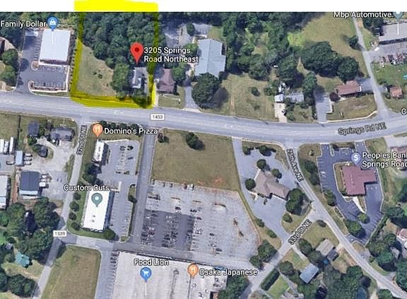 This is a wonderful location! This property is located adjacent to Family Dollar and directly across the street from Food Lion shopping center and near Peoples Bank. This would be an ideal property for retail, office, or other commercial opportunities. This property is close proximity to McDonald Parkway, I-40 and Downtown Hickory areas. This property has many possible uses and has a high traffic count on Springs Rd. The home is being conveyed with the property at no cost. Their will be no repairs made on the home, so thus no square footage is being shown for the home. The home needs to be torn down. Water and sewer are available on this property.