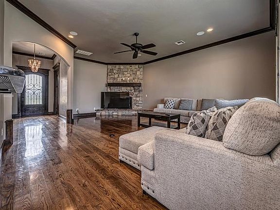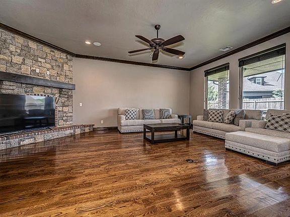 Beautiful Home with Upscale Finishes — Nestled in The Willows' highly desirable gated community on a quiet cul-de-sac, this stunning residence blends comfort with elegance. Stylish upgrades include hardwood floors, custom blinds, and three inviting living areas. The chef’s kitchen features an oversized walk-in pantry, abundant storage, gorgeous granite countertops in both kitchen and laundry, high-efficiency double-pane windows, and elegant accent lighting that enriches the ambiance. Cozy up by the fireplace or enjoy the manicured, low-maintenance yard. Additional highlights include a sprinkler system, a spacious 3-car garage with an in-ground storm shelter, and convenient walk-in attic storage. A perfect blend of luxury, safety, and thoughtful design in every detail.
