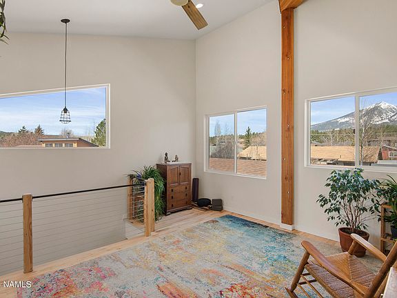 This home checks boxes! Amazing location near National Forest, FUTS Trail, Snowbowl, Downtown, Parks and Schools. This Cheshire home is one of a kind with its second story addition, open and bright floor plan and remodeled kitchen. As you enter this home you will appreciate the bright living space, modern concrete floors, skylight and wood-burning stove. The oversized kitchen has an abundance of soft closing grey cabinets with granite & butcher block counters and stainless steel appliances. The panoramic and stunning view of the San Francisco Peaks from the upstairs family room is sure to take your breath away. This home has a brand new roof on the first story, inviting backyard, curb appeal and more. This home is a must see! Schedule your showing today!