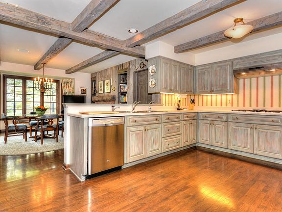 Gracious English Country Home sits on gorgeous 5 acre wooded lot. Enjoy spacious kitchen with charming Keeping room or dinette with natural fireplace to warm the heart of the home. Many bright picture windows flank dining, living and family room with great views of landscaped backyard. Hardwood wood floors and 3 fireplaces. Rare first floor Master with great closet space and private bath. Every bedroom has its own attached bath, plus 2 half baths on first floor.