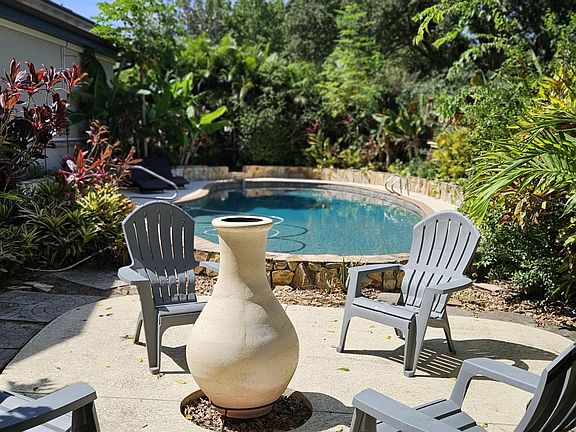 WELCOME TO YOUR TROPICAL OASIS! Where you feel like you are on VACATION EVERY DAY! 4 Bedrooms 2 Baths, over sized 2 car garage and an AMAZING TROPICAL POOL area. YOU HAVE TO SEE THIS HOME to EXPERIENCE the SERENITY! HUGE Florida room has custom Anderson doors and windows with electric roll down screen shades. Enjoy all year round overlooking your beautiful pool and tropical oasis AND views of the Indian River as well. The all season kitchen with Stainless Steel Grill and granite counter top enhances the huge FL Room as it really adds so much more living area. This home has a lot of natural light and privacy. The updated kitchen with the butler's pantry is great for entertaining! ''High Point community is home to the HIGHEST POINT in Brevard County, listed by the USGS as being 83 feet (25 m) above sea level at its apex.'' New Roof in 2020, AC 2022, Interior & Exterior Painted 2022, Pool Pump 2024, Pavers on Driveway & Paths 2023, TONS OF UPGRADES over the last few years!