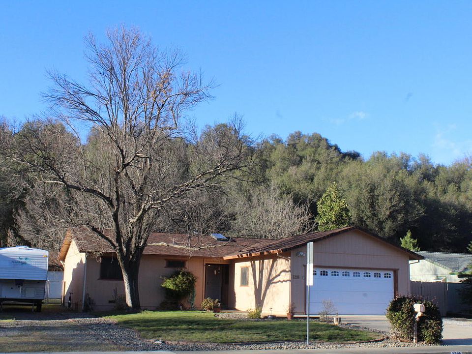 OPEN house Sat. March 17th. 12:00 - 3:00 PM. Privacy comes with this lovely home located close to the River trail. 3 bedroom 2 bath on .96 acres. Open floor plan. Remodeled kitchen and bathrooms. Marble counter tops. Covered patio. 2 car garage plus 2 car detached finished garage/shop. RV parking.