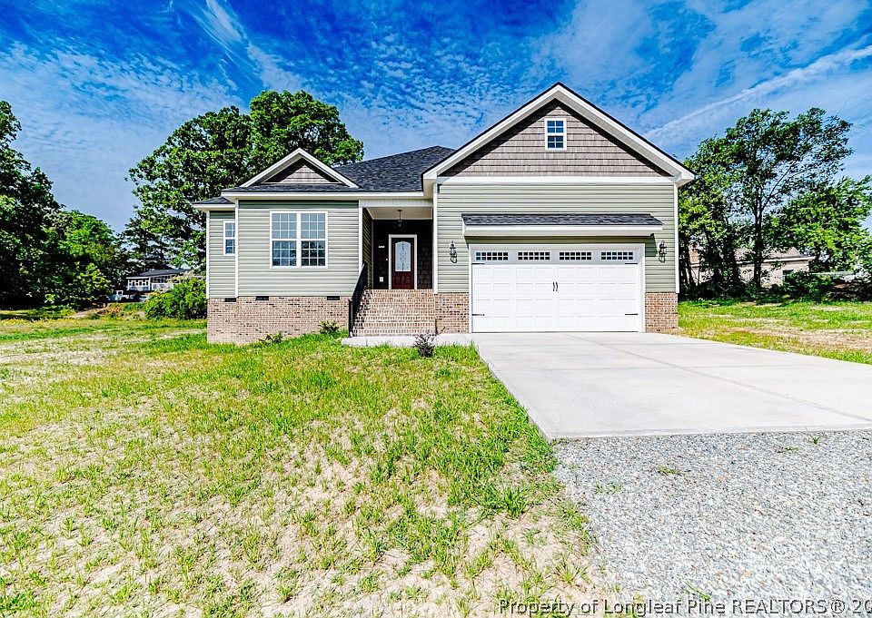 Welcome to your dream home! Nestled on 0.53 acres, this stunning ranch-style home boasts 3 bedrooms, 2.5 baths, and a spacious 1,829 square feet of living space. Step onto the covered front porch and imagine sipping your morning coffee as you soak in the peaceful surroundings. Entertain guests effortlessly in the open concept layout, seamlessly flowing from the dining room to the kitchen and into the inviting living room, complete with a beautiful treyed ceiling. The kitchen, adorned with granite countertops, offers ample space for culinary creations and the perfect opportunity to add a coveted kitchen island. With a 2-car garage providing convenient parking and situated just outside the city limits with no city taxes, this home awaits its new owners to make cherished memories. Don't miss the chance to make this your forever home!