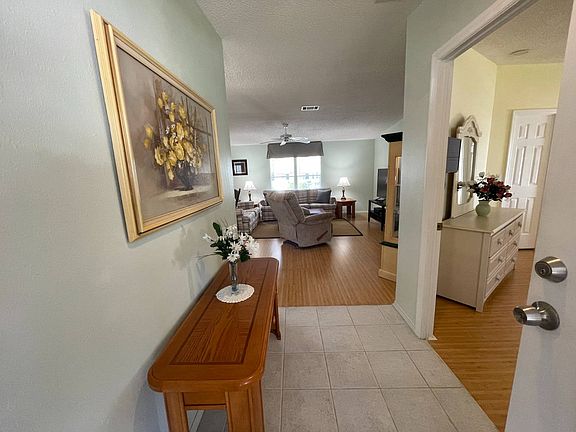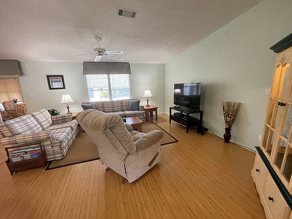 3206 Lauren Court, Ellenton FL. 34222  Ridgewood Estates 55+ Community (Pet Friendly)    This is a mobile home for sale in a gated, lot-lease community.   Turn key, Everything in the photos stay, so just bring your suitcase. This updated 3BR/2BA 1997 Palm Harbor has a split-bedroom floor plan.  It has ample room for living, dining, and entertaining.      The premium lot location on a cul de sac with water views is Florida living at its finest!    This home is an open living room/dining room/kitchen combination with laminate flooring and vaulted and textured ceilings.  The 2022 roof, 2022 vapor barrier, and 2019 A/C keep it all cool!  A 4-Point inspection is being provided to the buyer by the seller.    The kitchen is Chef's delight! There are plenty of cabinets and cupboard space.  There is an island for accommodating an extra hand in the kitchen.  The breakfast bar can also serve as a buffet service for the formal, adjacent dining room.   A laundry room adjacent to the kitchen has a washer/dryer (included in the sale) hookups.    The 12 x 21 enclosed porch is adjacent to the living room and accessed through sliding glass doors.  There is 8-inch vinyl on the floor in this light, bright, room that exits out the back to a 10 x 12 outdoor patio (slab) with views of the pond across the cul de sac.    The master bedroom has laminate flooring,  a ceiling fan, and vaulted ceilings. The master bathroom features dual sinks and a soaking tub.  There is a separate walk-in shower.    The 2nd and 3rd bedrooms have laminate flooring, ceiling fans, vaulted ceilings, and extra closets for plenty of storage.     The guest bathroom features a tub/shower combination, a single sink vanity, and 8-inch vinyl on the floor.    The lot rent is $1,709 (actual TBD by property manager) a month, including lawn mowing, edging and blowing, and all the community amenities below.    Ridgewood Estates features a 24/7 guard gate,  2 Clubhouses; 2 Pools; a Hot tub; a Shuffleboard & Tennis court; a Library; a Billiards Room, and a workout room, with a 7-day calendar of events to take part in. Come join in the Fun!    Florida MH Sales, LLC cannot guarantee or warrant the accuracy of this information, measurements, or condition of any property. Measurements are approximate. All homes are sold "as is" and personal or professional inspection is encouraged. Lot rent is set by the community and is subject to change. All buyers must be approved by the community prior to closing on a negotiated sales contract