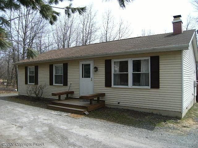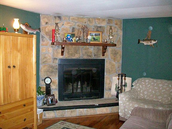 Charming 3 Bedroom Ranch located on private one acre wooded lot with access to 5 lakes, swimming pools,tennis courts, basketball courts, and clubhouse activities! Home has many upgrades including beautiful hardwood floors, ceramic tile floors, modern country kitchen, stone fireplace, and large deck. Low heating costs with alternate kerosene monitor system. Perfect home for first time home buyers, retirees, or vacation home!