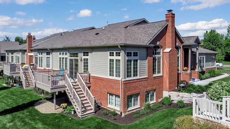 Your Maintenance FREE Villa Town-Home at Briar Leaf Golf Club of LaPorte is ready for owners offering beautiful views of the greens! Built in 2018 there was no expense spared here! Inside you'll find upgraded laminate or tile flooring throughout, vaulted ceilings with custom fans, quartz counters, salt-less water softener with whole house filter, upgraded appliances, under-cabinet lighting, extra large peninsula in kitchen that's ideal for prep or entertaining! The Master Bath features heated tiled floors, double vanity and a gorgeous tiled walk in 66 x 40 shower with bench and 7.5ft Tall Rain Shower! There are 2 bedrooms plus an office with custom desk that could also be used for guest overflow. The natural daylight basement has 4 large windows with golf course views and is plumbed for a 3rd bathroom. It's easy living here that's also commuter friendly. Enjoy golfing everyday and LaPorte's downtown shops, parks, entertainment and lakefront!