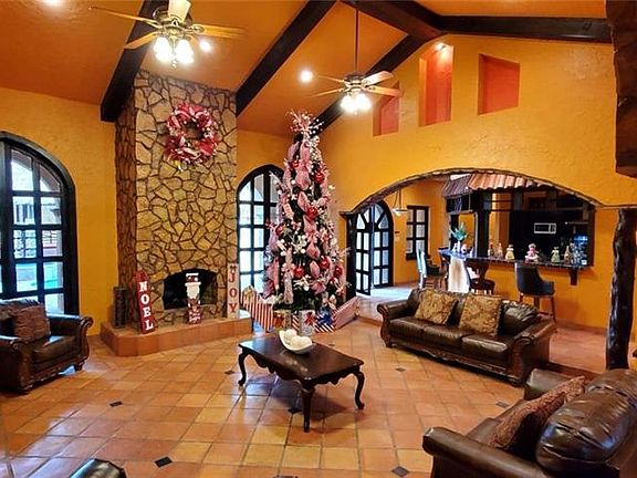 GORGEOUS INCOME PRODUCING HACIENDA! This stunning Hacienda has so much to offer on its 2.50 Acres. It can be used as Residential or as an investment. All permits are up to date for its current use as an event center. Huge living room with a beautiful fireplace, cedar ceilings and mesquite pillars, gorgeous kitchen with blue tile throughout giving it an authentic rustic look, 4 bedrooms, plus a bonus room/office, two separate swimming pools (two events can happen simultaneously), with ample parking space. Backyard includes covered horse stables, 2 separate huge palapas with outdoor kitchens ready to host all types of parties and events. If that is not enough, this Home can be the home of your dreams giving you the perfect setting to host and entertain your guests and family on your private swimming pool and giving you the option of still making income from the swimming pool rental on the very back perfect for small birthday parties.