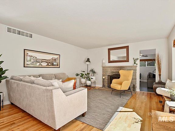 Discover this rare opportunity to own a 4-bed, 2.5-bath mid-century home in one of the most sought-after locations, just off Bogus Basin (S of Cartwright Rd). Tucked away on a quiet, serene street, this home offers the perfect blend of tranquility and convenience, just minutes from Hyde Park, downtown Boise, and the River/Greenbelt. Step inside to find original red oak hardwood floors and fresh paint throughout. The cozy wood-burning fireplace warms the spacious living area. Enjoy peace of mind with updated windows (‘06), and new AC and furnace (‘22). The primary suite features an ensuite bathroom with dual vanities and a shower. Enjoy a "flex space" for a family room, bonus room, or home gym. A large utility room offers ample storage, a sink, and an extra fridge, with a handy ½ bath located just off the laundry area. The backyard is a spacious oasis with no back neighbors, garden space, a shed, and full auto sprinklers. Nearby trail access to Harrison-Hollow Loop completes this unique Boise Gem!