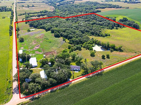 Have you dreamt of living in a countryside solace that mimics the beauty of living in a park, a hobby farm, or a future hunting camp to be the envy of your friends! This 38 acre property might be just the ticket. Upon arrival you'll discover a cozy feel with a 3 bed 2 bath home (WITH BRAND NEW SHINGLES) with a modern kitchen nestled into a beautiful setting with mature oak trees protected by a wind break and a number of outbuildings to include a 41x86 barn for livestock, 20'x60' open front machine shed, a 30,x60 machine shed with office area, a couple hog buildings, storage buildings, grain bin, and a handy 2 car garage located just steps away from the house. **Digital Boundary lines are estimates only**