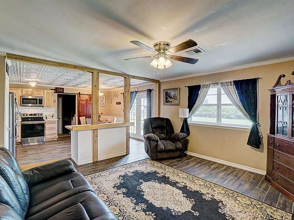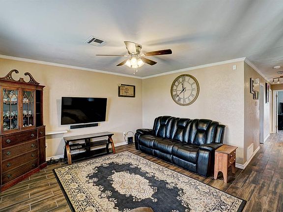 Wonderful updated home in great location, walking distance to all three schools, minutes from Carriage Hills Elementary and MacArthur Middle & High Schools. Totally updated kitchen, beautiful cabinets, quartz countertops, stainless steel appliances, designer custom ceilings, island, pantry, barn door to utility room. Beautiful tile floors throughout including all bedrooms. 3 BR & 2 living or 4 bedrooms. Beautiful remodeled bath, double vanity, new vanity in both bathrooms. Double french doors to patio. 12x12 storage shed, fenced in yard, nice carport, nice converted garage with CH&Air, house is approx. 1300 sq ft.