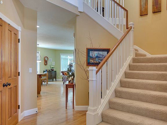 Custom built home on large private lot. Wonderful layout with spacious rooms. Gourmet kitchen with new granite counters, back splash and kitchen sink. Cook Island, walk-in pantry and generous prep space with double ovens. Large family room and additional Media room with surround sound and bar area over 720sqft of garage space. Master Suite, beautiful nature views from bedrooms. Mature landscaping and trees, deck & garden areas.