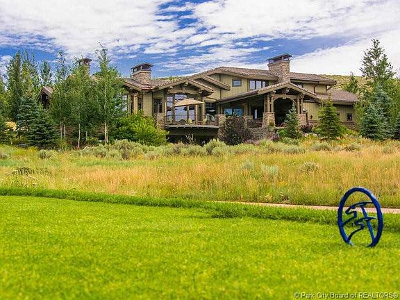 If you don't like grand views to all 3 ski resorts, the Olympic Park and golf, you won't like this home. Mike Upwall designed home sits above the tee box on Hole #3 - Pete Dye Course. Incredible views to all 3 ski resorts and the Olympic Park. This 4 bedroom, 6 bath home was designed for entertaining. Kitchen has a 15' radius bar with a 5' island bar, dual dishwashers, pantry with wine cooler, spacious patios with built in grill and fireplace. Cherry cabinets, balcony and staircase. Walk in wine cellar, radiant heat, audio system throughout, 5 car oversized garage with workshop (approximately 2000s.f.), over 1500 sq.ft. of storage (included in Apx. Total S.F.). Concrete Tile roof. Landscape includes numerous perennial gardens, over 75 trees, and a relaxing water feature. Furniture negotiable.