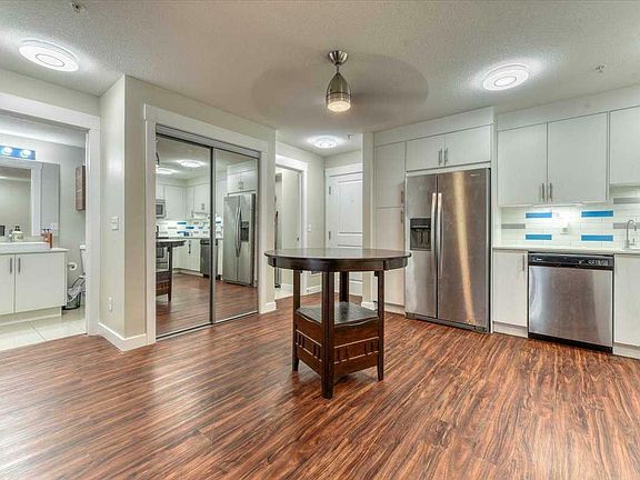 Highly Sought After South Facing Unit in Orchard Sky! This newly updated 2 bedroom 2 bath condo has new luxury plank flooring and fresh paint. This home has an open concept design which features a gorgeous U-Shaped Kitchen with quartz countertops and stainless steel appliances. A spacious dining/living room with patio doors to the deck. The 2 bedrooms are separated by the living room. The Primary Bedroom comfortably fits a king sized bed and features pass through his/her closets to the 4pc ensuite. The 2nd bedroom is spacious and located beside the 4pc guest bath. There have been thoughful updates done such as cieling fans installed, a 7 Stage RO Water Filteration System, Additional Storage Shelves added in the bedrooms and Bathrooms (Medicine Cabinets), Entertainment Box and Swivel Arm TV Mount in Living room. There has also been black out curtains installed. Being a South Exposure Unit allows for ample natural light within the living space with a deck which is perfect for lounging and enjoying or for growing your own mini garden. This Unit also comes with a Titled Underground Stall and a Storage Cage. This would be the perfect first home or investment condo!