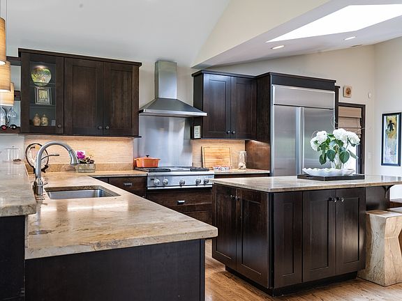 Right out of a gardener's dream...this sanctuary oasis home fulfills those seeking a dreamy first floor primary suite with all the enhancements of beautiful living from inside to out. Wake up & escape to pure relaxation in your secret hot tub steps outside the primary bedroom with a natural privacy canopy of trellised vines transporting you to vacation mode. Entertain while cooking in the airy sunlit, gourmet chef's kitchen with huge island and cathedral ceilings that opens to dining/family room space. This entire home is threaded with an organic, eclectic blend of earth tone colors mixed with natural stones and outdoor landscaped grounds to match. Huge family room accented with lannon stone FP, overlooks fabulous patio with dining and sitting areas. Primary wing down its own hallway with spa bath equipped with heated floors, steam shower, dual vanities, large soaking tub with jets, and walk-in shower. Sliding doors out to the private hot tub and separate office space off the bedroom. A true retreat! The 2nd floor is ideal with 3 more beds & another family room with beautiful cherry built-ins accented by skylight. 1 bed with bay window and en-suite spa bath while 2 other beds share hall bath. Incredible storage throughout both floors with attached 2 car garage. If you are looking to live in a beautiful space with nature shining through every window, then this is your own home. Best yet...incredible west Wilmette location close to the best New Trier district schools, and minutes to 41. It's all here waiting for you!