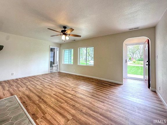 This updated 3 bedroom, 2 bath home features a modern design with vinyl and tile floors in neutral colors, complemented by gold accents. The interior exudes a sophisticated charm with it's tasteful decor and finishes, creating a luxurious and inviting living space.