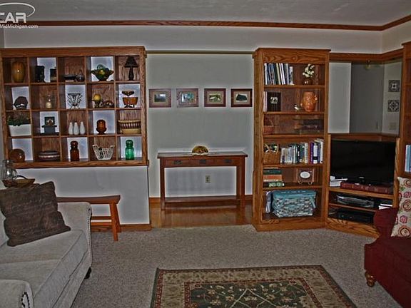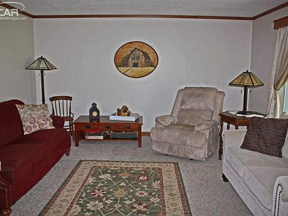 This updated sprawling ranch offers spacious rooms, Lafata oak kitchen with all appliances, fire lit family room, vinyl siding & windows, plus master suite with private bath. Park-like 5.9 acres partially fenced with a master gardener touch & perennial gardens. Trails thru the woods & wildlife galore. Covered patio & deck. Day window finished basement.