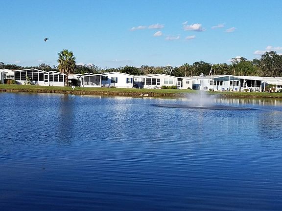 Wonderful lakeside home in Ridgewood Estates. Palm Harbor 2 bedroom, 2 bathroom home with open concept great Room and kitchen, large island cooktop with grill and breakfast bar, wall oven and side by side refrigerator. Cathedral ceilings and soft paint tones throughout. Beautiful views of the lake from the great room and lanai. Inside laundry and large storage shed. A Must See!