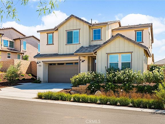 Welcome to your new home in Temecula's master planned community of Sommers Bend, where modern living meets thoughtful design. This remarkable 4-bedroom, 3-bathroom home offers a turn-key & move-in-ready experience. From the moment you arrive, you'll feel a sense of space and tranquility, thanks to the single-loaded street out front elevating this home’s curb appeal with uncrowded views of the vast hills across the street and stunning mountains in the distance. Step inside and notice the natural flow of the open-concept layout, designed for both daily life and effortless entertaining. Every detail has been carefully considered, from the high-end quartz countertops and soft-close cabinetry to the stunning fireplace with a custom mantle that anchors the living area. The kitchen is a chef's dream, featuring a gorgeous large center island with shiplap accent, counter seating, pendant lighting, farmhouse sink, stainless steel appliances, tile backsplash and large walk-in. The home offers incredible versatility. There is a desirable downstairs bedroom & bathroom perfect for family or a guest room. Upstairs, a spacious enclosed loft with elegant French doors provides the perfect flex space for a home office, media room, or even an extra bedroom. The primary suite is a true sanctuary, complete with a beautiful barn door that opens to a luxurious, spa-inspired bathroom. Step outside to a private low maintenance backyard which is perfect for year-round enjoyment and entertainment. The elevated lot provides incredible privacy, as the home sits high above the rear neighbors. Featuring a covered patio, a custom-built BBQ island with counter seating, artificial turf, retaining wall, extra hardscape and ambient low-voltage lighting to set the mood and tons of blue skies to give you a wonderful vantage from all over. There are two dwarf lemon trees, a naval orange, a Texas grapefruit, a lime and a mandarin tree neatly manicured and at your disposal. Enjoy modern comforts with a fully paid solar system, stylish plantation shutters throughout, LVP flooring, epoxy garage finish, EV charger hook-ups, and premium Delta matte black fixtures that add a sleek, consistent touch throughout. As a resident of Sommers Bend, you'll also have access to exceptional community amenities, including resort-style pools, amazing clubhouse, fitness center, state of the art sports parks, and scenic trails—all just minutes from Temecula's best wineries, dining, and Temecula’s top-rated schools!