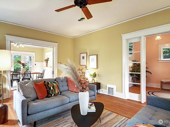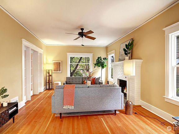 A classic foursquare home in fabulous shape on Mt Baker’s sweetest street! Greet the warm morning sun on the front porch. Enter through a grand foyer. The sumptuous golden fir floors are newly refinished. The massive living and dining rooms with big windows are perfectly proportioned. Enjoy evenings on your walk-out back deck and patio with flat back yard. True to its name this house has 4 big upstairs bedrooms and a full bath surrounding a large central landing. The full height/full size basement is waiting for your expansion ideas. Fresh paint inside and out. Deep driveway with detached garage. Walk to lake, parks, lightrail, schools, and shops.