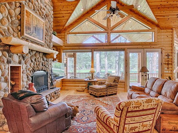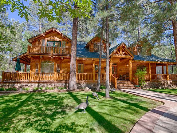 Beautiful custom built log sided cabin sitting on the fairway at Pinetop Lakes Country Club. Stunning views as you enter. 4 bedroom 4 bath plus a bright open loft. Large impressive greatroom. Bright and open kitchen with plenty of storage to include a large pantry. Imported 3c gold crystal countetops, knotty pine cabinets, farmhouse sink, beautiful hardwood hickory floors throughout, T & G ceilings, floor to ceiling stone fireplace, solid pine wood doors and so much more! Pride of Ownership Throughout. There are 2 master bedroom suites, one downstairs and one up. Heated floors in downstairs master bath, very spacious with custom granite that gives it a spa like feel! Stunning wrap around fully covered deck. Circular driveway with a parking slab off to the side. Beautifully landscaped.