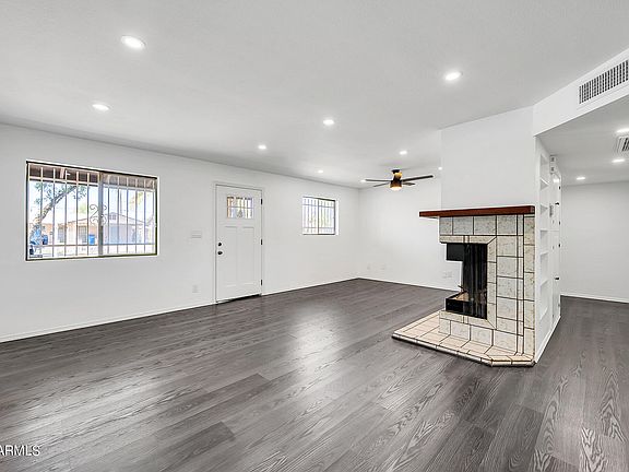 New lighting and ceiling fans, fresh paint, updated bathrooms, an enlarged and open kitchen with new cabinets and granite counter tops, including a generous sink and island; new luxury vinyl flooring thoughout plus new carpet in 2 bedrooms; a tidy laundry space with stackable washer and dryer; plus a cosy fireplace in the living room.The entire exterior has also been refreshed with a coat of paint on house, carport, and patio. Inside the large backyard with block fence new PebbleTec surface and cool deck surround the sparkling pool, updated landscaping,The entire exterior of the home has been fresh painted, carport, and patio. Phenomenal location near Arcadia and Arcadia Light!! Minutes from both Sky Harbour minutes from Scottsdale