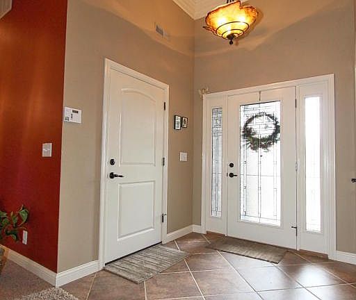 SHOWSTOPPER!!! OPEN SUNDAY APRIL 19th 2 - 4. Feature home in 2010 HOME EXPO w/many extras not found at this $. Inviting exterior w/landscape curbing, stamped concrete walk, chocolate brick/stone exterior and sentry columns. Welcoming tile foyer opens to great room w/floor to ceiling Coronado stone hearth around gas FP accented by arched windows w/plantation shutters and wrap-around crown. 18'' ceramic tile/diamond pattern flooring in kitchen/dining w/granite counters, cream glazed staggered custom cabs w/crown, stainless steel appliances included plus pantry. Luxurious master...see photos. HUGE/DEEP jacuzzi tub and plus OVERSIZED tile shower. Private entrance/exit from master to covered patio if you want a hot tub :) Two add'l BR, upscale full BA, laundry room round out the interior (wired