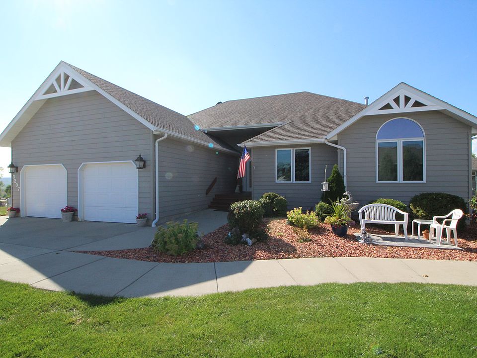 One-of-a-kind 4 bed, 3 full bath home with great upgrades and amazing views of Harney Peak-- even see Mt. Rushmore from your kitchen sink! This home features vaulted ceilings, oak hardwood floors and great floor plan with formal dining room plus breakfast nook. The kitchen features plenty of counter/ cupboard space and all appliances. The living room has an electric fireplace and beautiful cut outs above to help open this great space. Of the 3 spacious bedrooms on the main level, the large master has a walk-in closet and master bathroom with double vanity. Main level laundry. The lower level has a large family room with built-in shelves, gas fireplace, one bedroom, full bathroom and tons of extra storage. This property not only boasts an amazing interior, but the exterior features include an attached 2 car garage, expansive back deck, detached 2 car garage, miniature golf course and a huge side yard for plenty of room to play. Additional Features: Geothermal heat pump and A/C 2013, radon mitigation system, energy efficient water heater, solid 6-panel doors, basketball hoop, 9x9 sunroom, one of the crawl spaces was turned into an awesome kid's play room but could also be for additional storage, attic above attached garage with great storage and drop down ladder, beautiful views and plenty of privacy from each window, driveway set back from the road for noise and privacy benefits. For more information or to schedule a showing, call Arlyn Dyce (605) 209-1637 or e-mail arlyn@arlyndyce.com. For all up-to-date listings in the Black Hills, go to www.arlyndyce.com