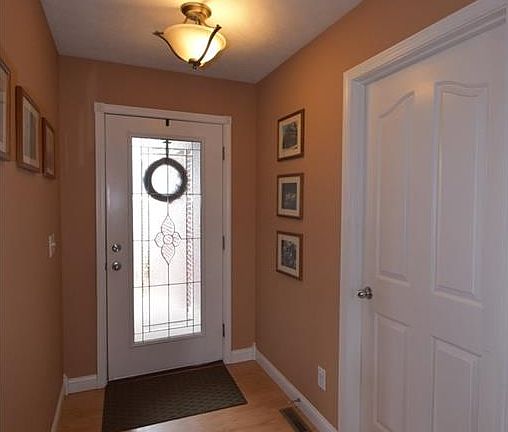 All brick 3 bedroom, 2 bath home with full unfinished basement. Close to the new East End Bridge. Open floor plan with vaulted ceiling and laminate wood flooring. Split bedroom floor plan. Fireplace with lovely wood mantle and surround in the living room. Vaulted ceiling with fan. Dining area flows from the living room into the kitchen. Breakfast bar and plenty of cabinets with room for storage on top. There's a pantry too. Kitchen appliances stay (Refrigerator with ice/water dispenser on door, Range, Microwave and Dishwasher). French doors with integrated blinds spill out to the large deck. Fully fenced back yard. The master bedroom features trey ceiling, recessed lighting and fan. Master bath has separate tub and shower and double sink vanity. One of the secondary bedrooms has an decorative atrium window, vaulted ceiling & fan. You will love the large hall closet. Convenient 1st floor laundry room with cabinets, laundry sink and closet. Full unfinished basement is plumbed for a bath and just waiting for you to complete it your way. This is an all electric home. A one year America's Preferred Co. Home Warranty is included for the buyer.