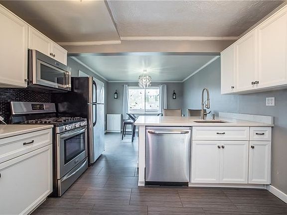 Totally updated 3 bedroom 1.5 bath Cape Cod in Castle Shannon. Easy access to Rt. 88 and downtown, the T-station is conveniently located too! Enter in to the living room with gray tones, newer wood laminate floors, open to the updated kitchen with granite counters, newer cabinets, ceramic tile floor, newer stainless appliances. The sliding glass door in the kitchen leads to an oversized deck over looking the large backyard. The master bedroom and the second bedroom are located on the main level, neutral carpet and paint tones in both. The second floor is the loft/third bedroom also done in neutral tones. The basement is finished and ready for your game room furniture, an extra bonus room in the basement can be a workout room or an office.