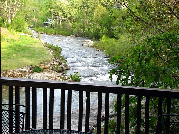 The upstairs one and a half story has a master bedroom with single jetted tub, a living room with a fireplace, dining room, full kitchen and dinette which steps out onto a large-high covered deck. The upstairs offers an additional bedroom another full bath and a loft. The riverside also has a covered deck. Inside there is a bedroom with fireplace and a living space-kitchen-bathroom with an individual jetted tub.