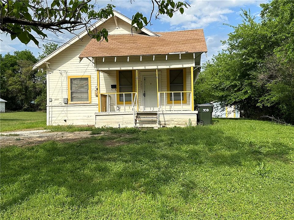 The original wood floor through out the house still looks great. Definitely, Old school design with lots of doors. IT has been continually owned and occupied for many years, and could be move in ready with only a few minor repairs. Two bedrooms one bathroom. living room, kitchen and dining room. Large lot with a storage building in the back.