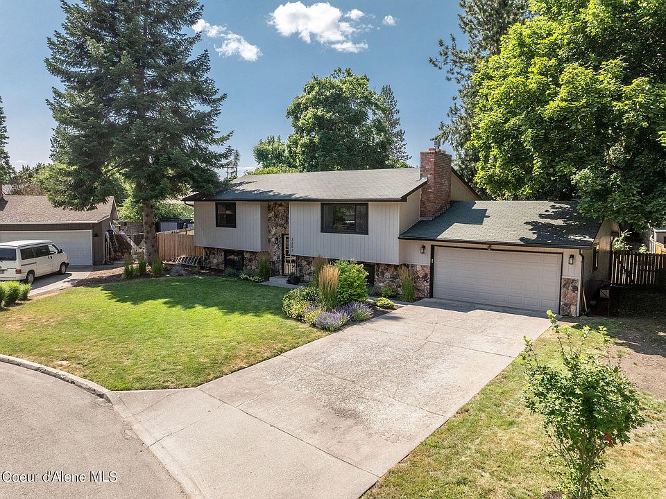 Fully remodeled 2,360 SF home featuring 4 bedrooms and 3 bathrooms, ideally situated near Canfield Mountain. This home boasts a spacious open great room, a stunning kitchen with a large island, and a dining area that opens to a covered deck, perfect for indoor-outdoor living. An additional large family room with a wet bar offers ample space for entertaining. The private, mature backyard is complemented by a full sprinkler system. Nestled in a quiet cul-de-sac, this home provides the perfect blend of comfort, style, and tranquility.