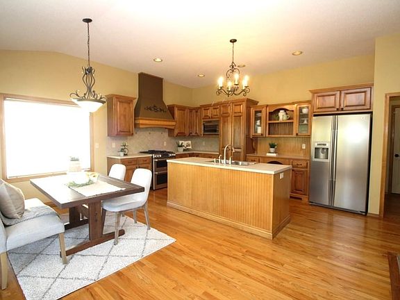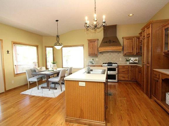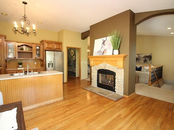 Meticulously cared for Ranch home on a corner lot with a lake view in the Maize School district. Talk about Curb appeal, this one is an eye catcher. This home shows pride of ownership, is clean and move in ready! It has been consistently well maintained and tastefully decorated throughout. The mature trees and landscaping along with a lush lawn on a well and sprinklers make for a great first impression. The covered porch is a great space to decorate and enjoy the outdoors. Welcoming you in is the Open floor plan you have always wanted. The openness combined with the warm neutral colors and glow of the fireplace provides a cozy space to enjoy. Super nice kitchen with Custom Maple cabinetry, large island, huge walk in pantry, built-in desk, ornate oven vent, and upgraded appliances including Gas double oven stove. Enjoy the lake views while eating at the breakfast nook. The hearth features a see-thru gas fireplace with a beautiful mantel. Adjacent to the kitchen is the main floor laundry with a mud room leading to the garage. Master bedroom features Vaulted ceilings and windows overlooking the backyard and views of the pond. The Maple woodwork continues in the Master bathroom. It has dual sinks, garden tub and beautifully tiled glass shower enclosure. The walk in closet space in the master bedroom is definitely a winner. It has a tall extended ceiling to hang all your seasonal clothes. Downstairs you will find a huge family room with a fireplace and a wet bar. This room has enough space for a game table and still plenty of room for a tv area. The storage room has carpet and can double for a great work out room. Spending time outside is something you will want to do. The covered deck is a great place to spend time relaxing and the views from your manicured lawn and the lake make it so appealing. The yard is completely fenced and has a wonderful shaded area to sit and enjoy your beautiful surroundings. Forest Lakes Subdivision features a Swimming pool, 3 ponds, walking path and sports court