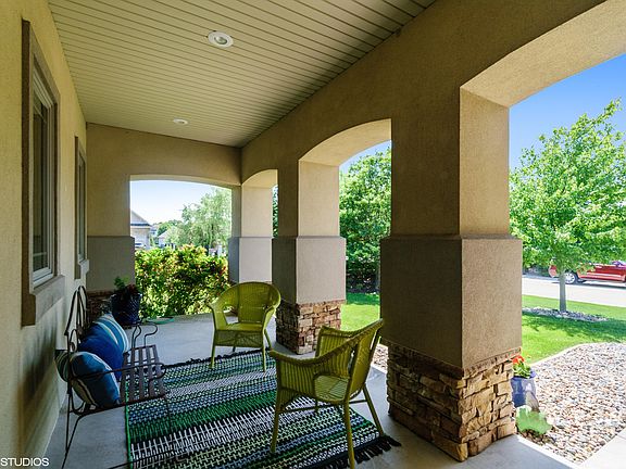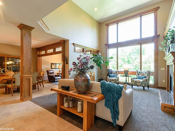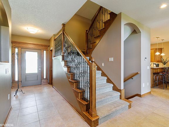 Beautiful 4 bedroom move in ready townhome that's nestled on the NE edge of town and has it all! Lovely welcoming front porch, entrance goes into a spacious living room with vaulted ceilings and gas fireplace and ample natural light through the windows. Main floor features huge master bedroom with walk in closets and full bathroom with double sinks, large kitchen with plenty of cabinets and counter space, newer stainless steel appliances and breakfast bar, big dining area, that opens up into large sunroom and then into the lovely deck to overlook the treed backyard. Upstairs has two large bedrooms and full bath and hallway open to livingroom. Basement is fully finished with bedroom, full bathroom, and large family room with built in shelving and entertainment center, TV included!!