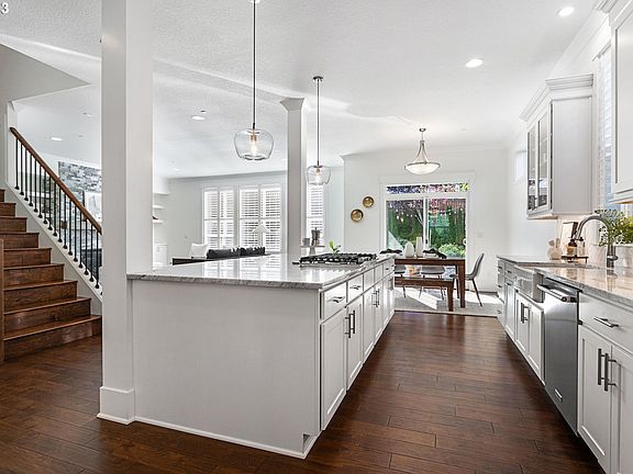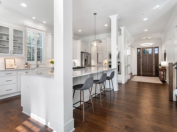 Stunning, like-new home in Bonny Slope. 3,801 Sq. Ft., 5 Bedrooms + Bonus, 3 Full Bathrooms. Oversized lot, custom-finishes and millwork, hardwood floors and upgrades throughout. Bedroom and full bathroom on the main. Great Room floor plan. Designer Kitchen with marble countertops, stainless steel appliances, island with breakfast bar, pantry, wet bar and spacious eating nook with sliding door to the backyard. Oversized Great Room with gas fireplace and stone surround, built-in cabinetry, shutters and ample natural light. Upstairs features hardwood floors in all bedrooms, Primary Suite with double door entry, tray ceiling, double walk-in closets with custom organizers and spa-like bathroom with soaking tub, walk-in shower, double vanity and walk-in tile shower. Spacious bonus room with built-in bar and walk-in closet. Impressive, fully fenced backyard with covered outdoor paver patio with built-in BBQ, built-in gas fireplace, lush level lawns and space to expand the lawn, add gardens or play structure. Located in desirable Washington County with excellent schools-Bonny Slope, Tumwater & Sunset!
