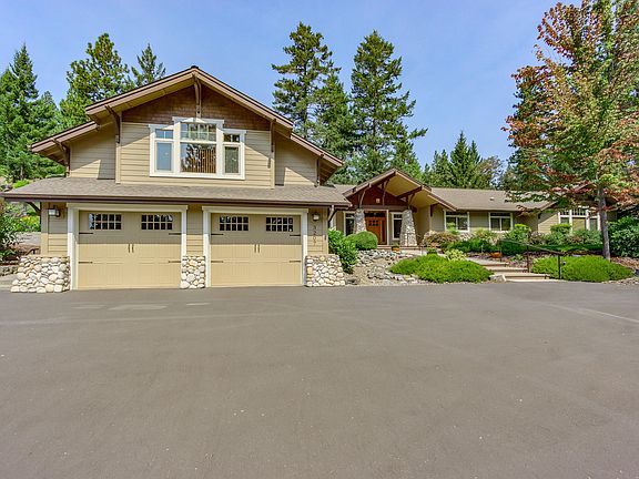 * Dramatic entry with large river rock pillars * Floor to ceiling river rock wood burning fireplace * 4 bedroom, 4 bath, 3991 sqft * Bonus room over garage with built-ins * Gorgeous kitchen with Alderwood cherry stained cabinets with art glass, granite counters, stainless steel appliances, commercial grade 6 burner cooktop, double ovens, microwave, recessed lighting and very large walk-in pantry * Spacious great room with dining open to kitchen * Grand master suite includes gas log fireplace, and wood-marble tile surround * 2nd master suite with nice bath * High ceilings with wrapped beams * Hand scaped pecan wood, marble, slate & travertine tile flooring * Granite and tile counters throughout * 3 covered patios with exposed aggregate * Hardiplank siding & 30 year comp roof * 2 water heaters & 2 zone heat/air cond. * Two car garage attached to the house & Two car garage/shop with office & storage * RV parking * Great well with 2500 gas holding tank * Water filtering system and water softener * In-ground solar heated pool * All on 5.5 acres on 2 tax lots! * Could be great horse property!