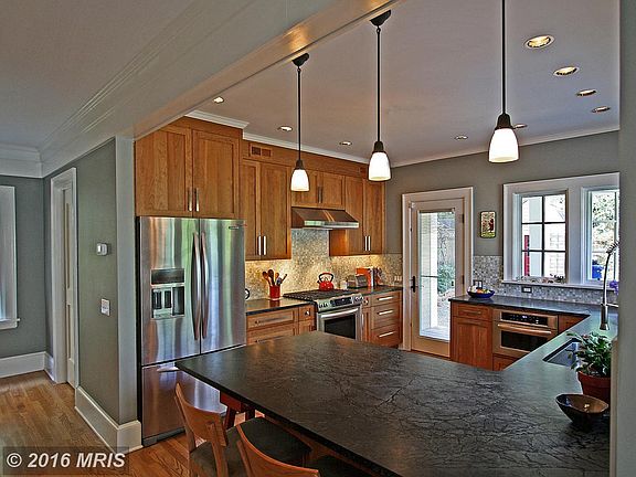 Meticulous renovation of a classic Chevy Chase Sears Col. Gracious room sizes, high ceilings & perfect flow for entertaining. Front porch w skylights, foyer, large DR w storage, gourmet kitchen w breakfast bar, cherry cabinets, SS appl & soapstone counters, LR w frpl, PR, den & mud room! 3BRs, laundry + 2 FBs up. Rec room, 2BRs, 2FBs in walk out LL-perfect au pair suite. Rear patio & garden.